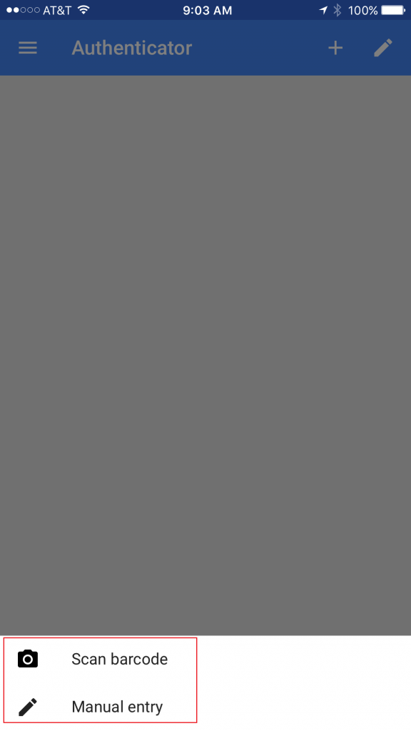 Open the Google Authenticator app on your mobile device now. Click the Add button in the Google Authenticator mobile app.