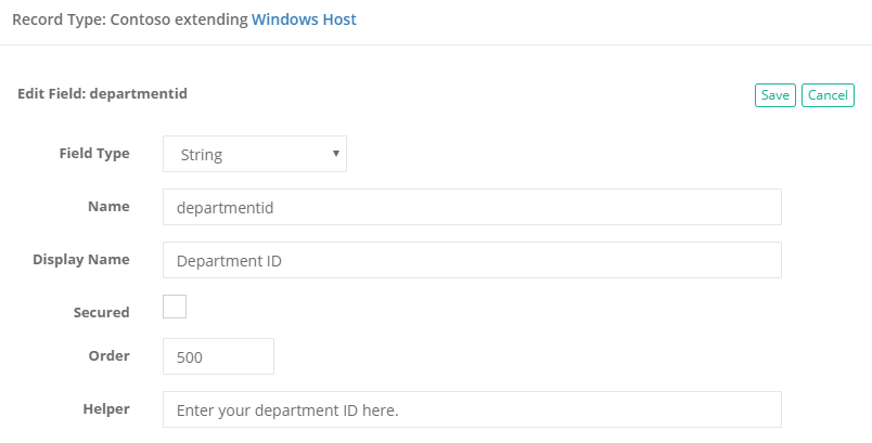 Optionally, you may enter placeholder text into the Helper field that will be displayed in the System interface.