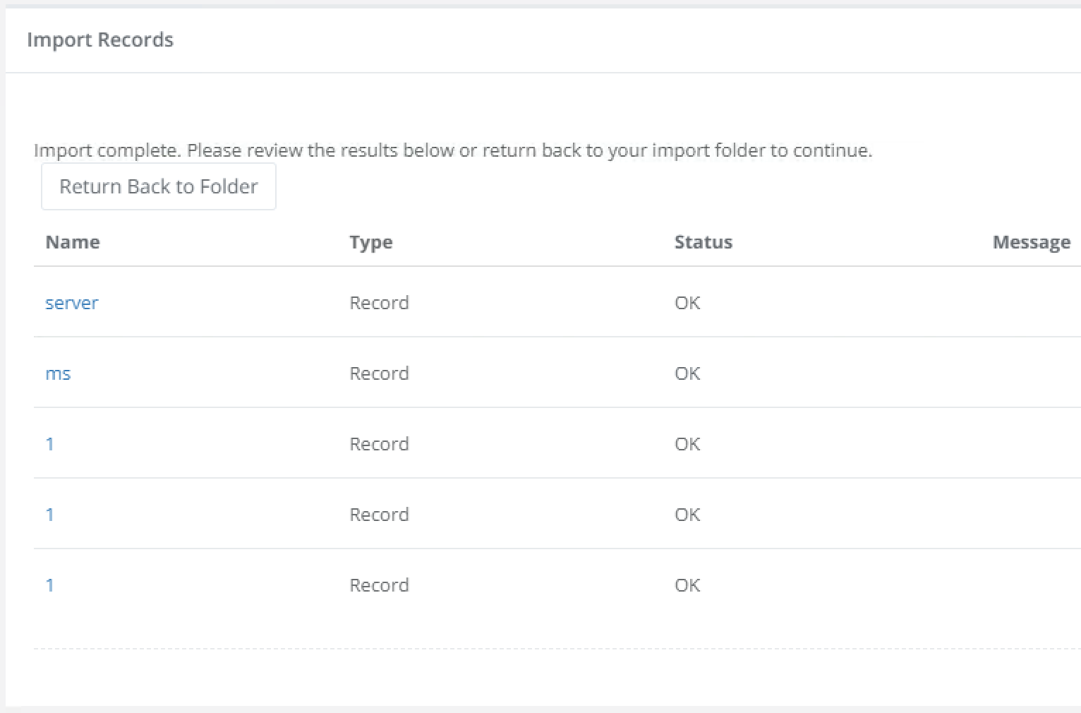 During the import process, the folders and records contained within your files will be created in Access Manager using their commonly shared parameters like name, description, host and port.