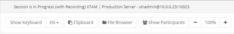 Click the + and – buttons to zoom in or out of the session in your browser. Click the 100% button to return to full screen. |