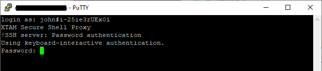 - At the SSH proxy login prompt, we will enter the string john#Unix Production Server or john#i-25ie3rUEx0i where john is our login name for PAM.