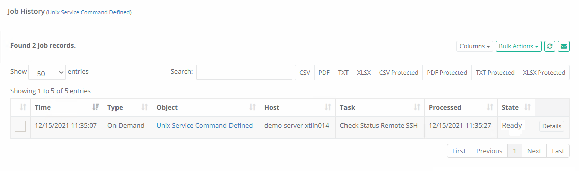 The Job History view will display all scripts that have been executed with this record. The most recent will be sorted to the top. If necessary, click the Refresh button until the State changes to Completed.