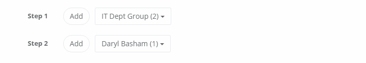 This creates the scenario where every user in the IT Dept Group will be notified of the request and any two members will need to approve before it advances to Daryl in Step 2.