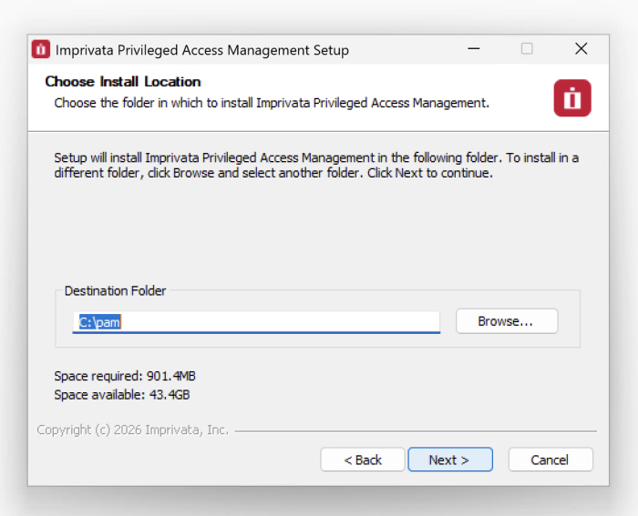 NOTE: The installation process does not create its own database or tablespace but rather makes use of an existing one. Also, for Oracle DB you just need to create a user (you do not need to create a new data base). With that in mind, please ensure one with the name “PamDB” already exists as this will be used by the application.